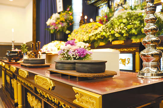 ご寺院の本堂は常に荘厳であり、供花などの最小限の設営のみで済みますので、葬儀会館で一から祭壇を設えるなどのコストを考慮しますと、安価に抑えられます。崇高な寺院の本堂で営む葬儀は、日本人の精神文化の継承とともに日本人としてのアイデンティティを養うことでもあります。